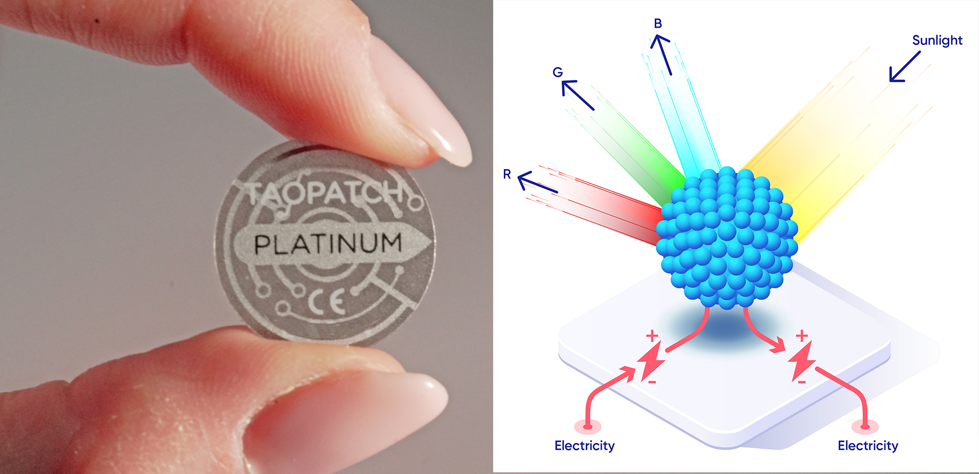 > è innovativo: all’interno di ogni Taopatch® si trova una nanotecnologia all’avanguardia (che ha ricevuto il Premio Nobel) in grado di convertire il calore del corpo in segnali luminosi benefici.